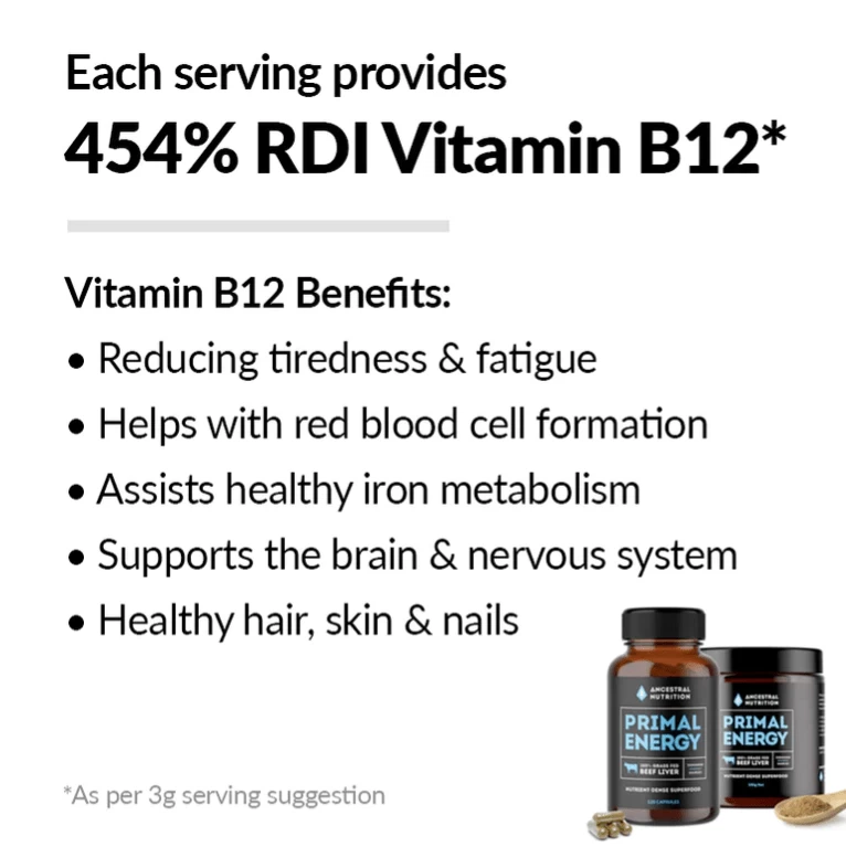 Primal Energy freeze-dried beef liver offers one of the most treasured organs from pastured raised Tasmanian cattle in the conveniece of beef liver capsules and beef liver powder. Beef liver is extremely nutritious and contains B12, Vitamin A, heme iron and folate to support your daily energy demands.