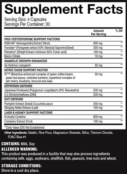 Beast Sports in collaboration with Bryan Moskow aka “The Guerrilla Chemist”, have thought of it all in this formula and left no stone unturned when searching for the best ingredients at efficacious dosages to use to provide you with the most powerful natural test booster on the planet. The inclusion of ingredients like Furostan®, KSM-66®, and Primavie® can help take your muscle-building efforts to the next level and help you add the quality size you demand. Additionally, the inclusion of S7™ can increase nitric oxide levels to help you attain an unreal skin-tightening pump unlike no other as well as helping to dilate your blood vessels to aid in shuttling nutrients out to the working muscles. Stop wasting time in the gym and start building the body of your dreams.