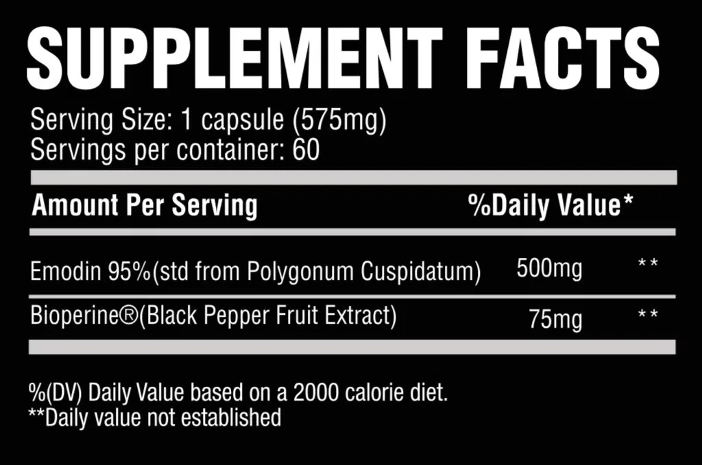 As you can see, emodin is a very powerful ingredient for inhibiting cortisol and insulin-induced weight gain. Unfortunately, the oral bioavailability is very low. In order to fix this issue, we added a large dose of piperine, commonly known as black pepper extract. In a study combining emodin with piperine showed a marked increase in bioavailability via inhibiting glucuronidation. This is the process where a glucose molecule is attached to emodin to make it more water soluble and easy to expel from the body. By stopping this process, the piperine allows emodin to maximally be absorbed and inhibit the formation of cortisol and help you meet and exceed your weight loss goals. This product can be taken by both men and women and works especially well for high-intensity athletes and fitness competitors.