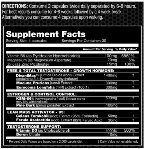 Unleashing the ultimate Alpha inside isn’t just about promoting testosterone production, it’s also about modulating estrogen and cortisol. That’s where our Estrogen & Cortisol Control complex comes in. KSM-66 is the premier form of ashwagandha on the market shown in multiple human studies to improve the stress and cortisol response. Pine Bark is rich in procyanidins which are known to stimulate the endothelial production of nitric oxide as well as possess an aromatase-inhibiting effect.