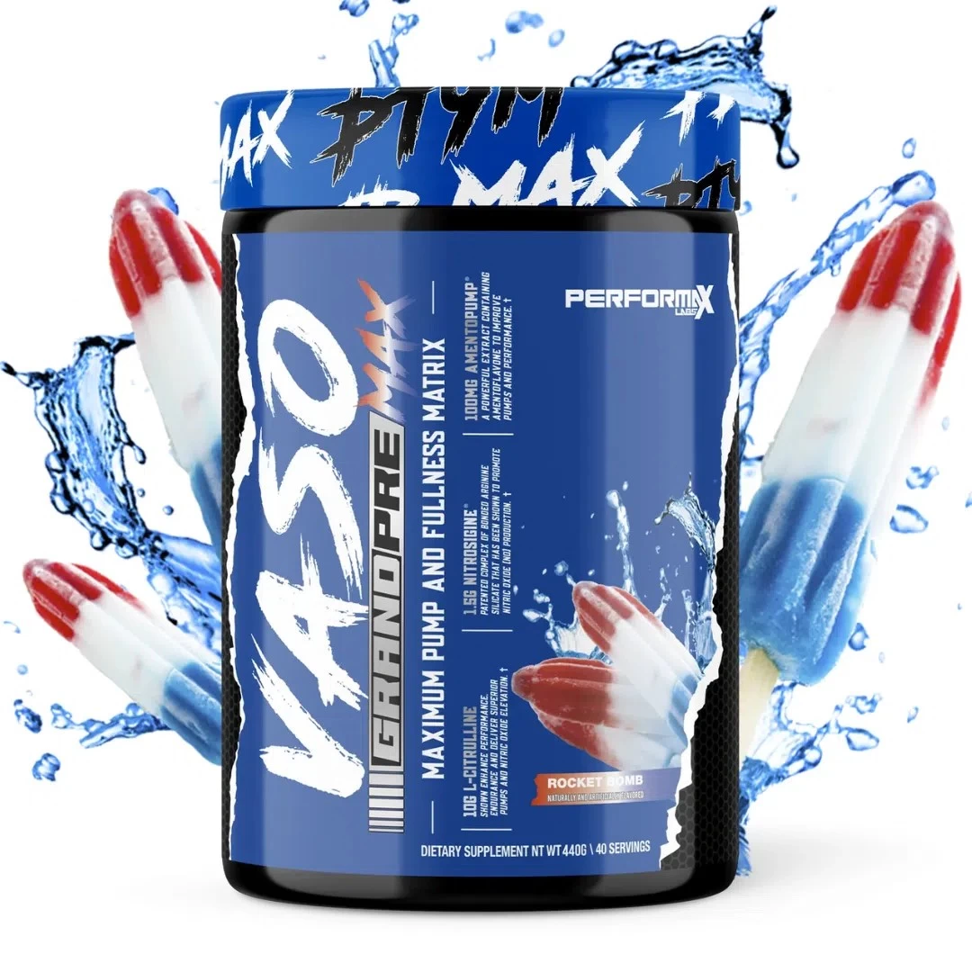 VasoMax Grand Pre utilizes a myriad of synergistic mechanisms that improve nitric oxide production, blood flow, and cell volumization to deliver an unparalleled pump pre workout supplement offering stronger, harder, longer lasting pumps!