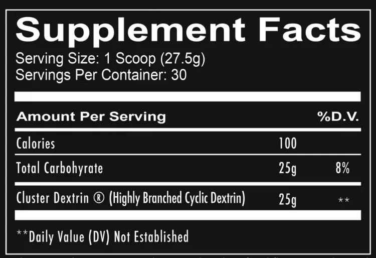 Cluster Dextrinยฎ is a highly concentrated carbohydrate that passes through the stomach quickly so it can be absorbed by the body as a readily available form of energy during training