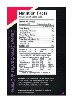 Casein is generally seen as a nighttime protein. Quite the opposite to whey isolates and blends that digest within the hour, casein can take up to 8 hours. Some would use this slow-digesting protein in the day in an attempt to stay fuller for longer, however, such a slow-digesting milk-based product can cause stomach discomfort through the day. This is why casein has become almost exclusively known as a night-time protein. Your body takes full advantage of the 8 hour digestion while sleep, allowing the muscles to be fed over that period of time.